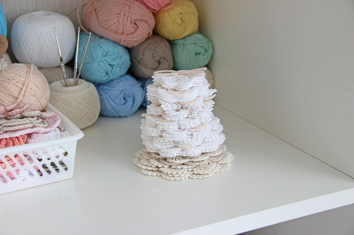 Сложила салфетки в стопочку, положила на полку и не удержалась, ещё разочек сфотографировала :) Снизу салфеточки в подарок, они из молочной и св.бежевой пряжи (ниточка потолще, но мне уж очень нравится) :))